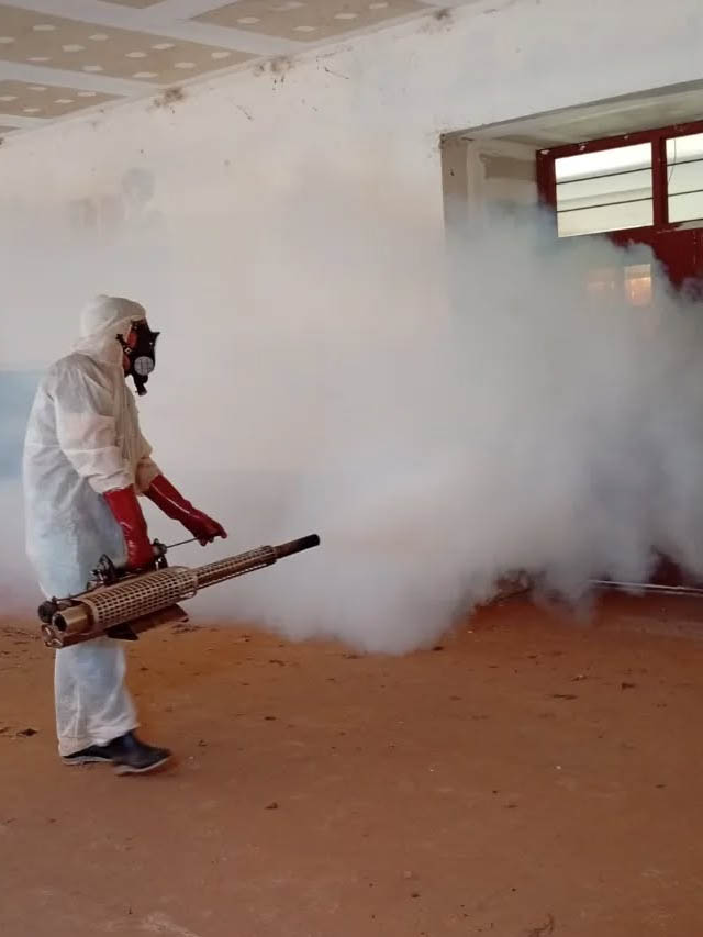 Las tareas se realizaron mediante la utilización de termo niebla, con el objetivo de acondicionar los espacios escolares y reducir la presencia de insectos en los predios.