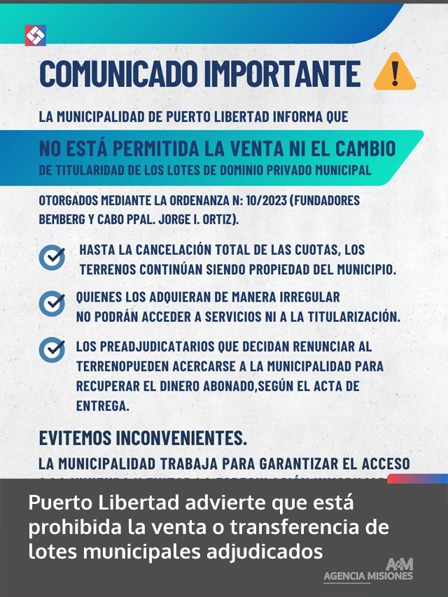 AGENCIA MISIONES.UNO | La Municipalidad de Puerto Libertad anunció el [...]