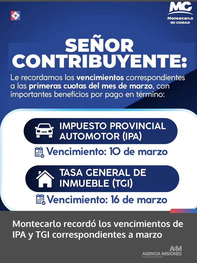 AGENCIA MISIONES.UNO | La Municipalidad de Montecarlo informó a los [...]