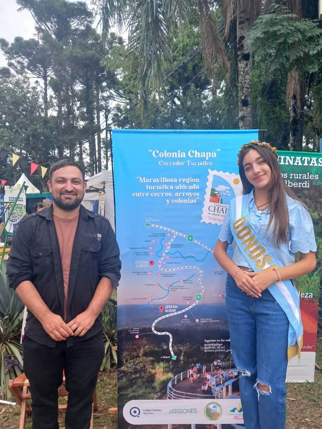 En el Parque de las Naciones, el stand de este corredor ofrece una atención personalizada a cargo de Mauro Biolatto, coordinador de turismo, y Jazmín Ghisla, Donosa Provincial de los Ranchos. Los referentes brindan información detallada sobre los recorridos y servicios disponibles, invitando a los asistentes a descubrir un trayecto que combina paisajes únicos con la hospitalidad característica del interior misionero.