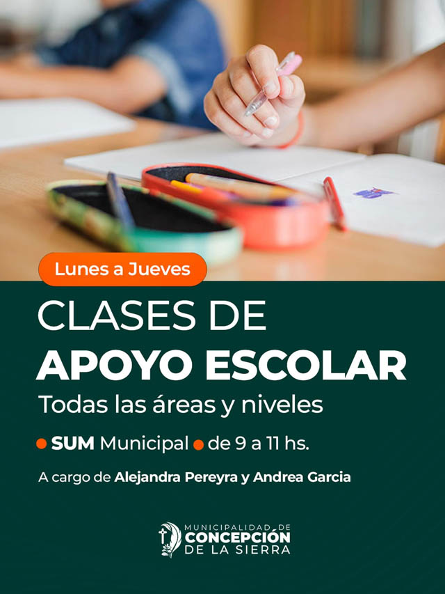 AGENCIA MISIONES.UNO | La Municipalidad de Concepción de la Sierra anunció el inicio de las Clases de Apoyo Escolar a partir del 23 de febrero, una propuesta gratuita destinada a acompañar a estudiantes de todos los niveles.