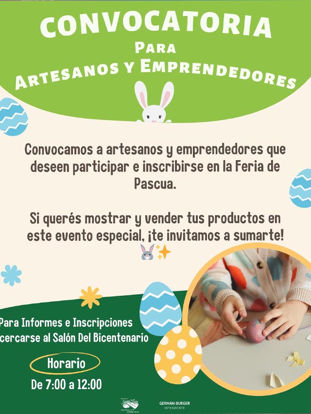 AGENCIA MISIONES.UNO | La Municipalidad de Campo Viera abrió la convocatoria para artesanos y emprendedores de la localidad que deseen participar de la Feria de Pascuas, un espacio pensado para promover el talento local y fortalecer la economía regional durante las celebraciones de Semana Santa.