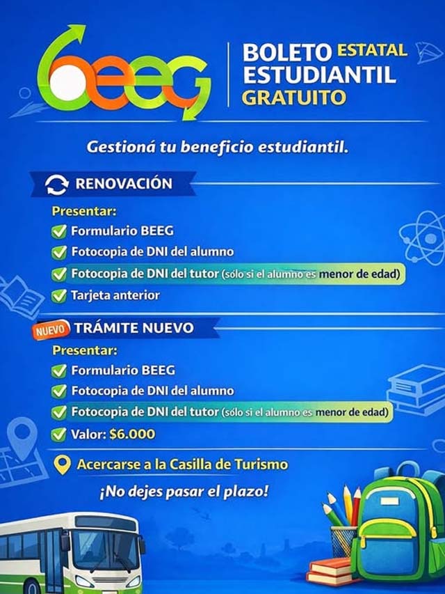 Desde el ámbito local informaron que ya está habilitado el sistema digital destinado a la actualización de información y tramitación del Boleto Estatal Estudiantil Gratuito, herramienta que permite a los alumnos acceder al transporte sin costo en el marco de la política provincial de acompañamiento educativo.