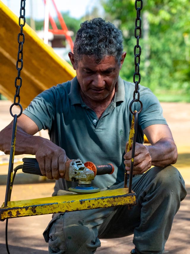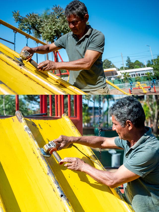 Entre las intervenciones realizadas se encuentran mejoras en juegos infantiles, hamacas y toboganes, además de trabajos de mantenimiento en bancos, asientos, muros y otras estructuras que forman parte del espacio público. Estas acciones buscan garantizar que la plaza continúe siendo un ámbito seguro y agradable para el disfrute de las familias.