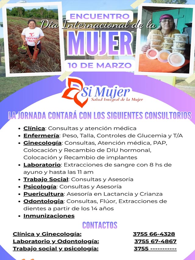 AGENCIA MISIONES.UNO | Este 10 de marzo se realizará en El Soberbio un encuentro en el marco del Día Internacional de la Mujer, que contará con atención especializada a través del programa “Sí Mujer” del Ministerio de Salud Pública de Misiones.