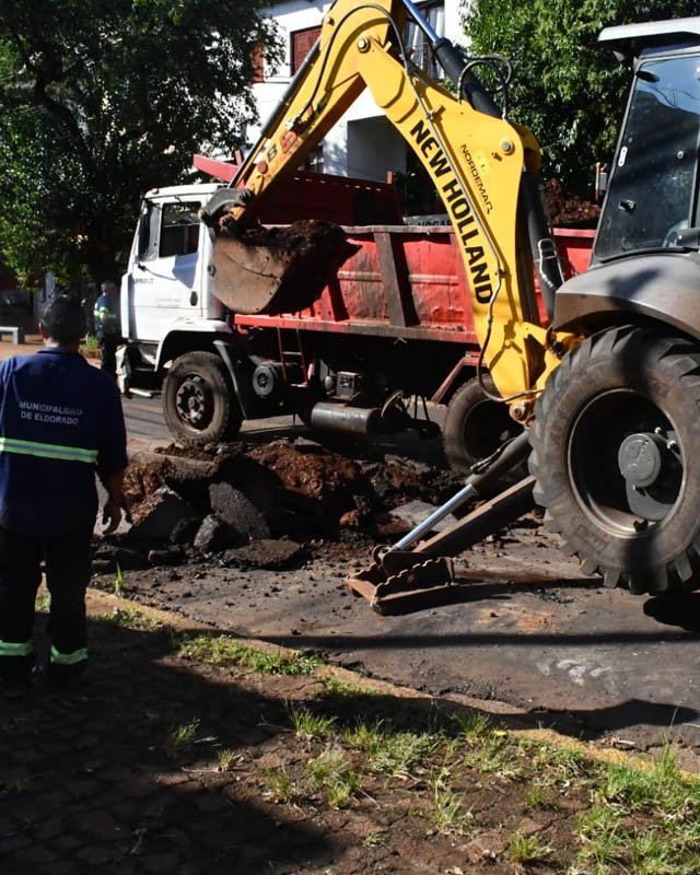 Eldorado avanza con trabajos de bacheo profundo sobre la avenida San Martín