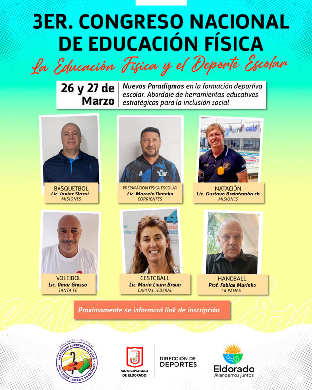 AGENCIA MISIONES.UNO | La ciudad de Eldorado albergará una nueva edición del Congreso Nacional de Educación Física, un encuentro orientado a la formación, el intercambio de experiencias y la actualización de docentes y profesionales del deporte.