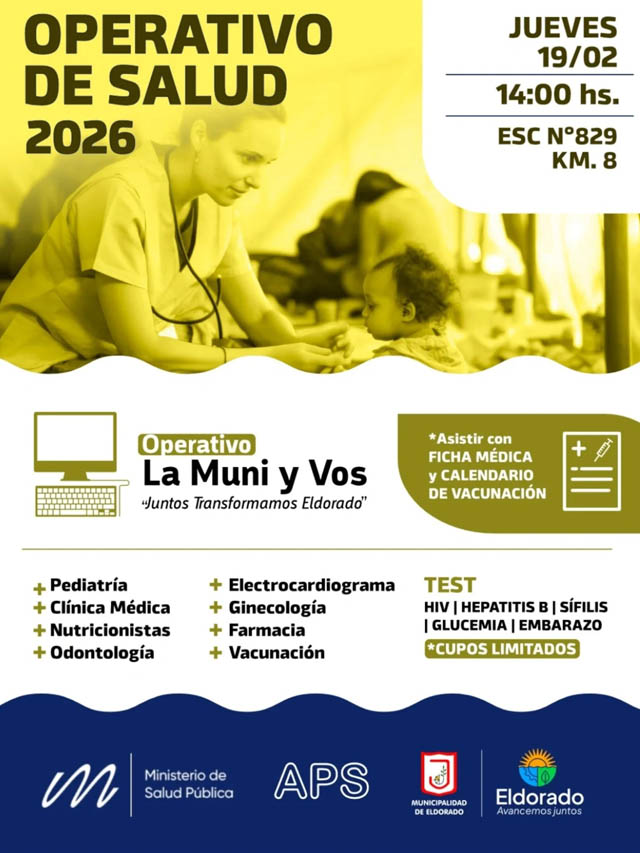 La entrada “La Muni y Vos”: Eldorado realizará un Operativo de Salud en el Km 8 con servicios gratuitos se publicó primero en Agencia Misiones.uno.