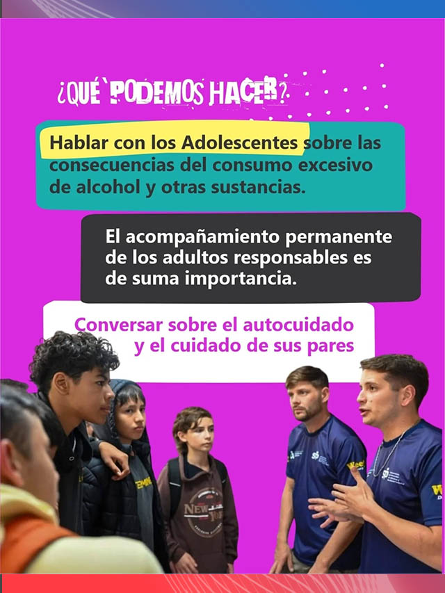 En ese sentido, remarcaron la importancia del acompañamiento permanente por parte de los adultos responsables, promoviendo el diálogo con los adolescentes sobre las consecuencias del consumo de alcohol y otras sustancias.
