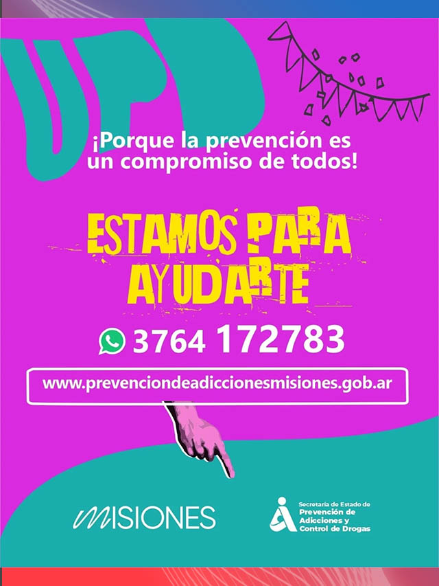 Ante cualquier situación de emergencia, recordaron que se puede llamar al 911 y que se encuentran disponibles canales de orientación y ayuda a través del número 3764-172783 y la web oficial prevenciondeadiccionesmisiones.gob.ar.