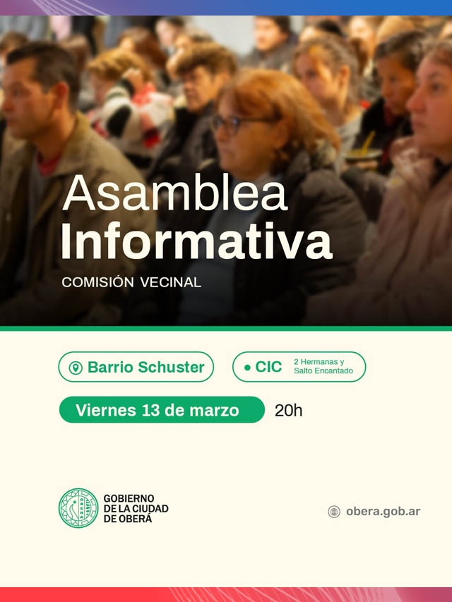 AGENCIA MISIONES.UNO | El Gobierno de la Ciudad de Oberá convocó a los vecinos del barrio Schuster a participar de una asamblea informativa en el marco del proceso de renovación de autoridades de las Comisiones Vecinales.