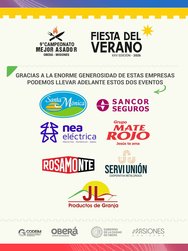 La entrada Oberá: empresas locales acompañan el Campeonato Mejor Asador y la Fiesta del Verano con entrada gratuita se publicó primero en Agencia Misiones.uno.