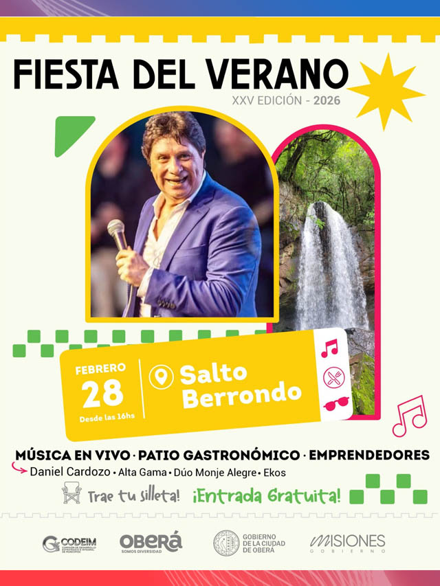 La Fiesta del Verano tendrá entrada gratuita a partir de las 14 horas en el Complejo Turístico Salto Berrondo, con una jornada pensada para disfrutar en familia, música en vivo, actividades recreativas y la definición del Campeonato Mejor Asador.