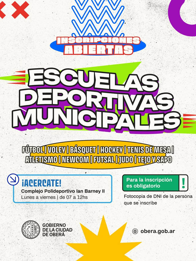 AGENCIA MISIONES.UNO | La Dirección de Deportes de Oberá informó que, debido a la alta demanda, se prorrogan hasta el miércoles 4 de marzo las nuevas inscripciones a las escuelas deportivas municipales.