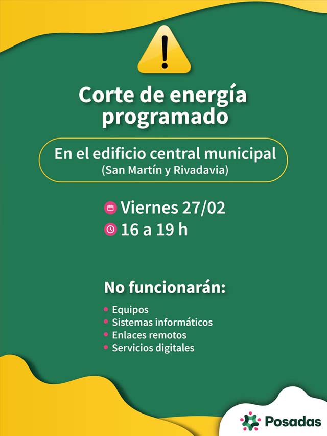 La entrada Posadas: el edificio central no estará operativo este viernes por la tarde por un corte programado se publicó primero en Agencia Misiones.uno.