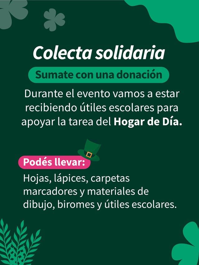 Además de las propuestas gastronómicas y culturales, la jornada incluirá una iniciativa solidaria que invita a los asistentes a sumarse con un gesto de colaboración. De esta manera, la celebración de San Patricio Artesanal busca combinar entretenimiento, producción local y compromiso comunitario en un mismo espacio.