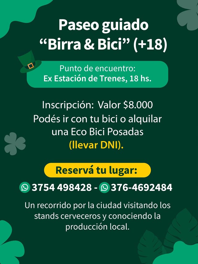 AGENCIA MISIONES.UNO | Este sábado se realizará en Posadas una nueva edición de San Patricio Artesanal en el sector de La Cascada, una propuesta que reunirá música, emprendedores y productores cerveceros locales en una jornada pensada para compartir y disfrutar de la movida cervecera de la ciudad.
