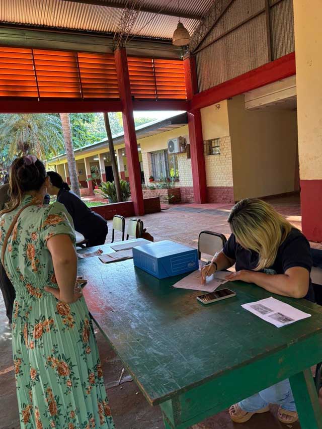 AGENCIA MISIONES.UNO | El municipio de Puerto Esperanza continúa con el operativo de inscripción para la obtención del Boleto Estudiantil Gratuito y este jueves el equipo se encuentra trabajando en la Escuela N° 439 del barrio Km 10.