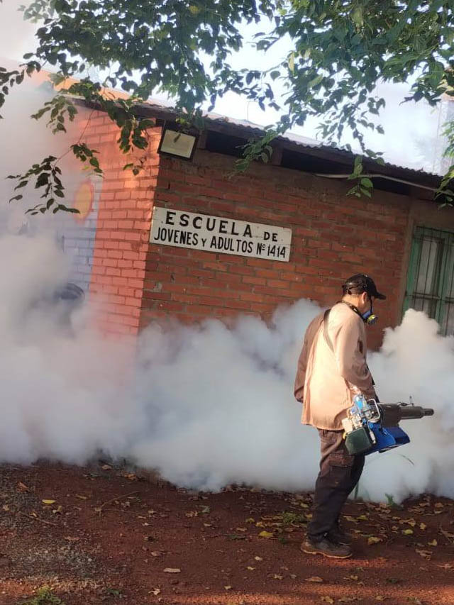 AGENCIA MISIONES.UNO | La Municipalidad de Puerto Esperanza lleva adelante tareas de fumigación en las instituciones escolares de la ciudad como medida de prevención contra el mosquito Aedes aegypti, transmisor del dengue.