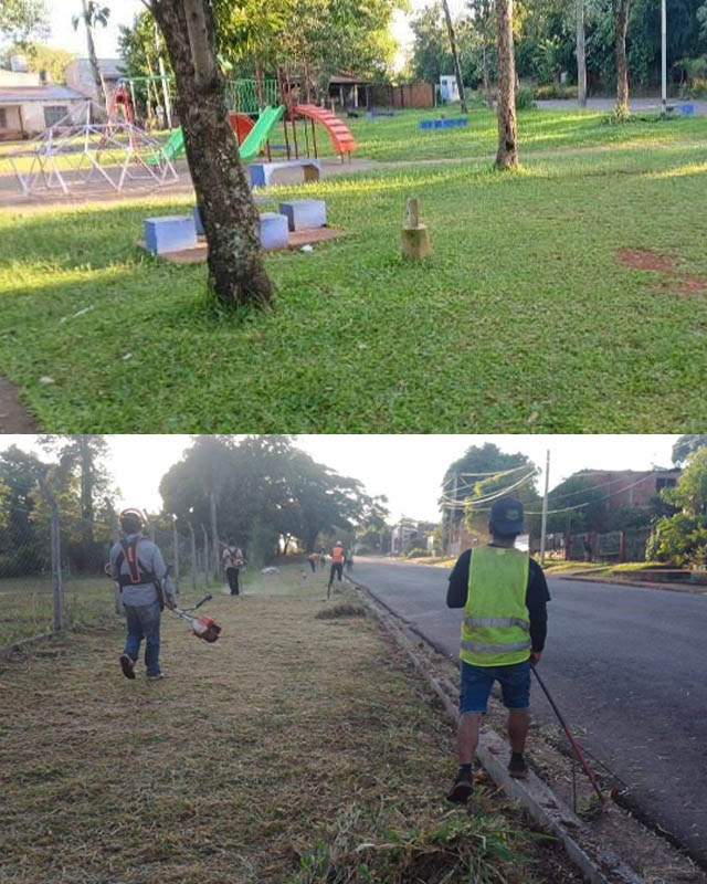 AGENCIA MISIONES.UNO | El equipo municipal de Parquización de Puerto Iguazú continúa desarrollando trabajos de corte de pasto, desmalezado y limpieza en distintos puntos de la ciudad, con el objetivo de preservar y mejorar los espacios verdes.