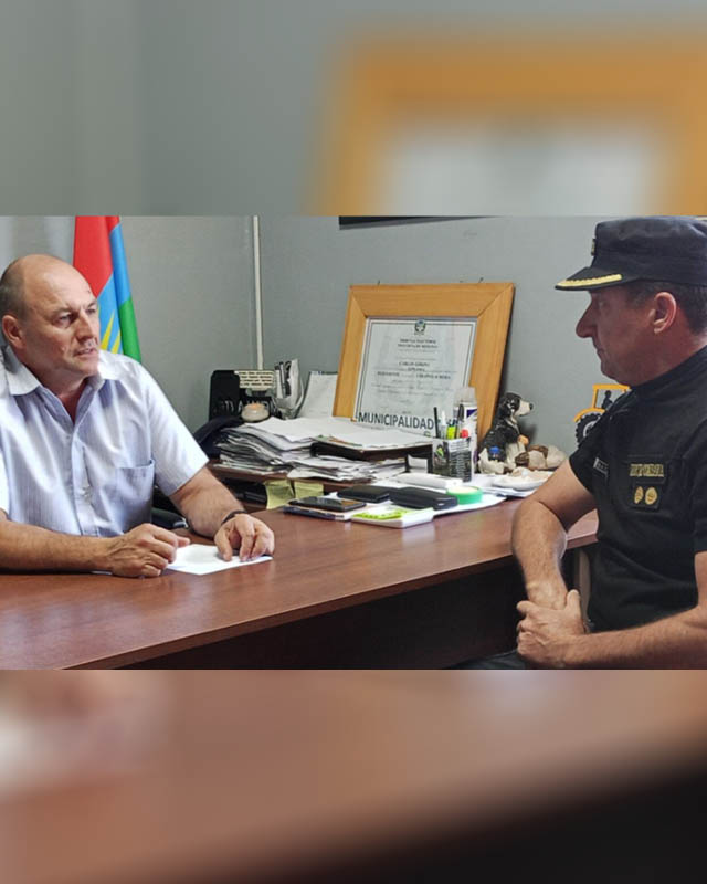 AGENCIA MISIONES.UNO | El intendente de Colonia Aurora, Cali Goring, mantuvo un encuentro institucional con el nuevo jefe de la Comisaría local, Juan Batista, con el objetivo de avanzar en acciones conjuntas vinculadas a la seguridad en la comunidad.