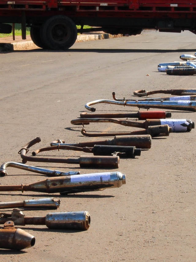 AGENCIA MISIONES.UNO | En un hecho inédito para la ciudad, el Juzgado de Faltas de San Javier llevó adelante la destrucción de 36 caños de escape no autorizados, en el marco de acciones destinadas a mejorar la convivencia urbana.