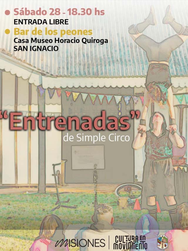 AGENCIA MISIONES.UNO | La obra “Entrenadas”, del dúo Simple Circo, se presentará este sábado a las 18:30 en el Bar de los Peones, el nuevo espacio de la Casa Museo Horacio Quiroga en San Ignacio, marcando el inicio de una renovada agenda cultural en el lugar.