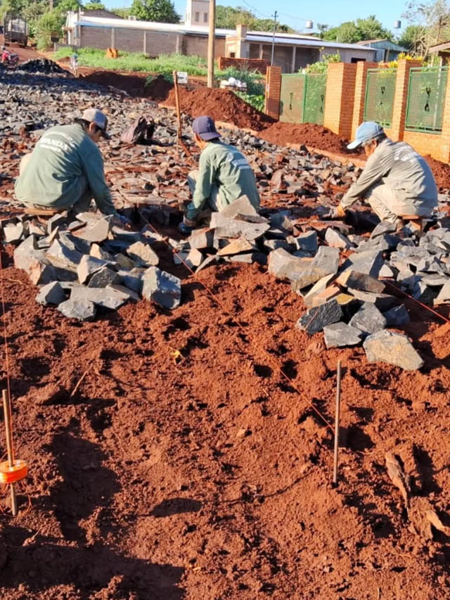 AGENCIA MISIONES.UNO | La Municipalidad de Wanda reanudó los trabajos de empedrado y construcción de cordón cuneta en el barrio Residencial, con el objetivo de mejorar la transitabilidad y la seguridad vial en la zona.